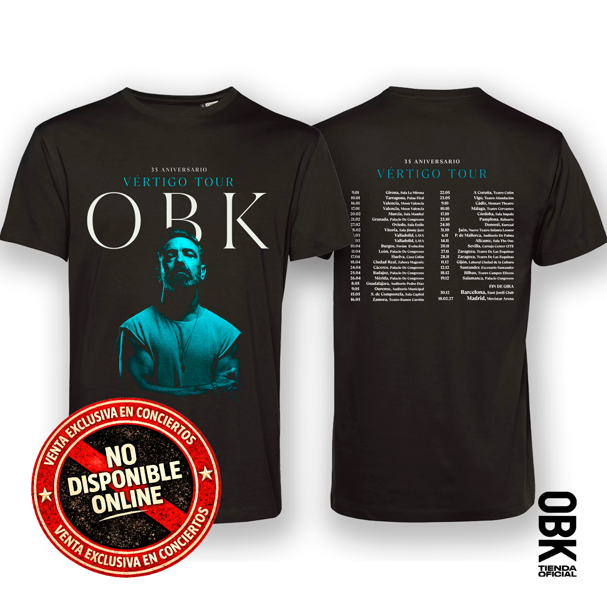Camiseta "35 aniversario". Venta exclusiva en el stand de merchandising oficial en los conciertos de la gira "Vértigo Tour 2026/2027"de OBK.