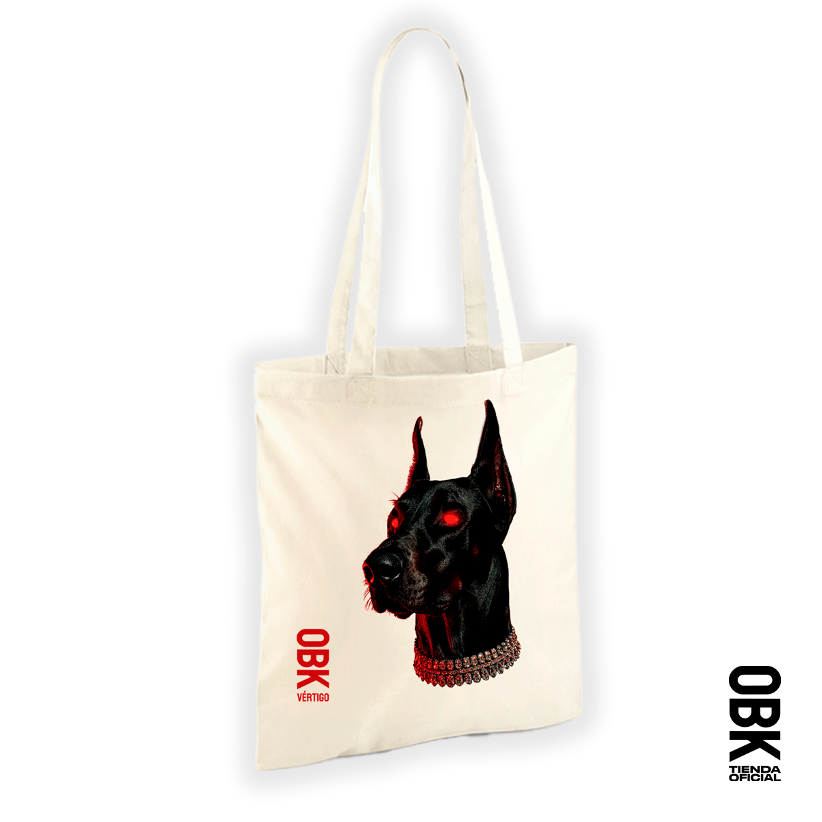 Tote Bag color natural de la nueva colección de OBK, "Vértigo", con impresión en DTF