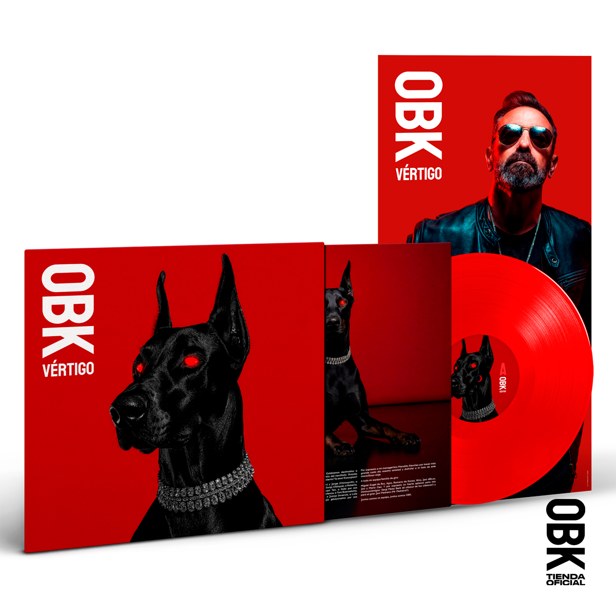 Edición del nuevo disco de OBK, Vértigo", en formato vinilo. Esta versión especial se presenta en vinilo de color rojo, fabricado exclusivamente para esta tirada, e incluye un póster exclusivo que no se entrega con la edición estándar.
